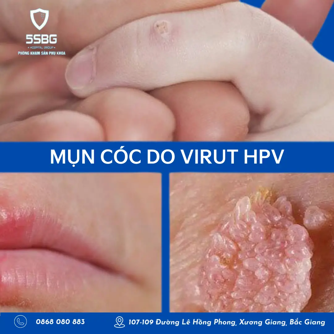 Mụn cóc sinh dục thường xuất hiện ở vùng kín, hậu môn hoặc xung quanh miệng. Chúng có thể là những khối nhỏ, phẳng hoặc nhú, màu hồng hoặc màu da.