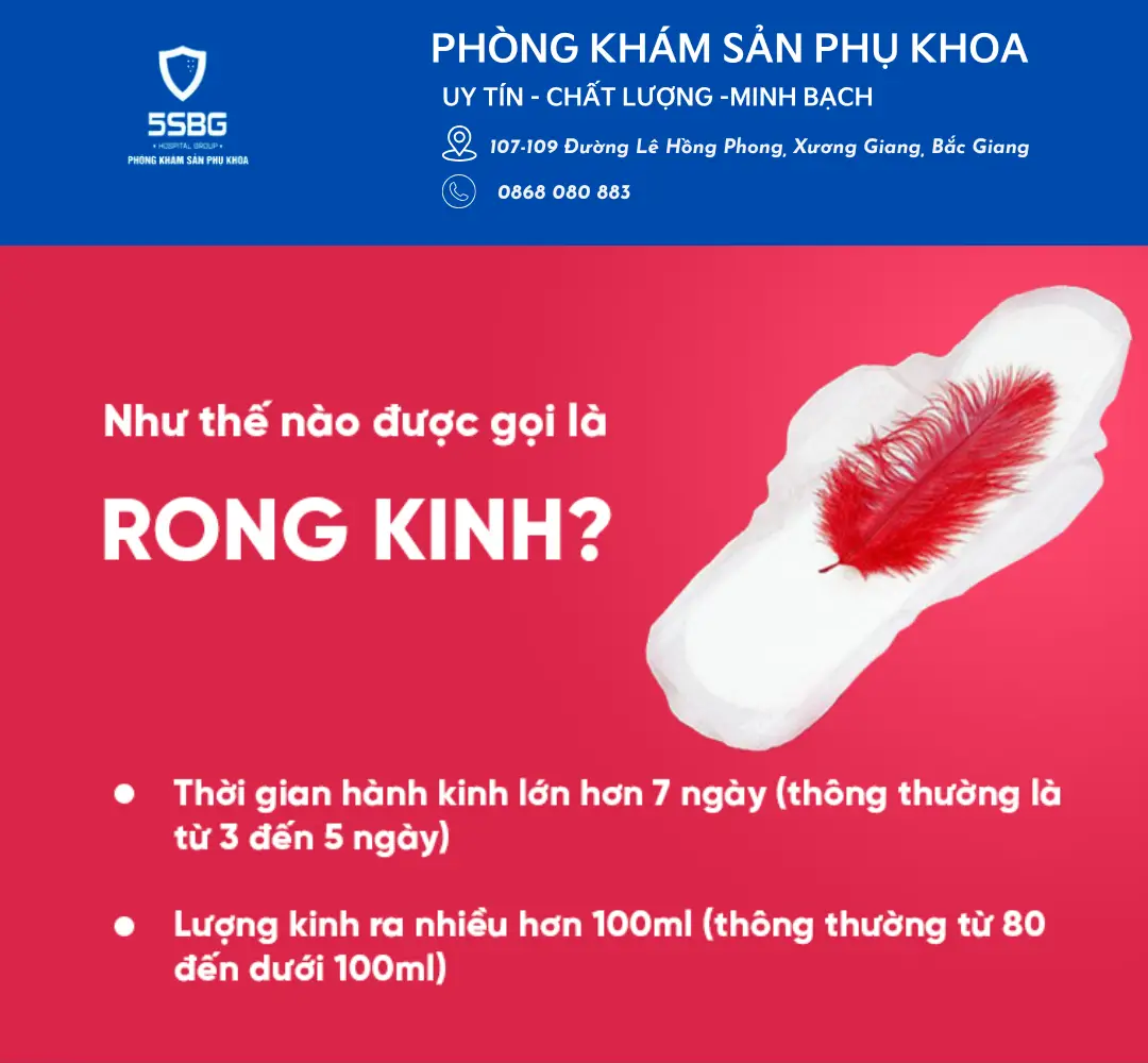 Rong kinh là hiện tượng chảy máu kéo dài bất thường trong chu kỳ kinh nguyệt. Phụ nữ có thể gặp phải tình trạng này do nhiều nguyên nhân khác nhau, bao gồm sự mất cân bằng hormone, polyp tử cung hoặc u xơ tử cung.